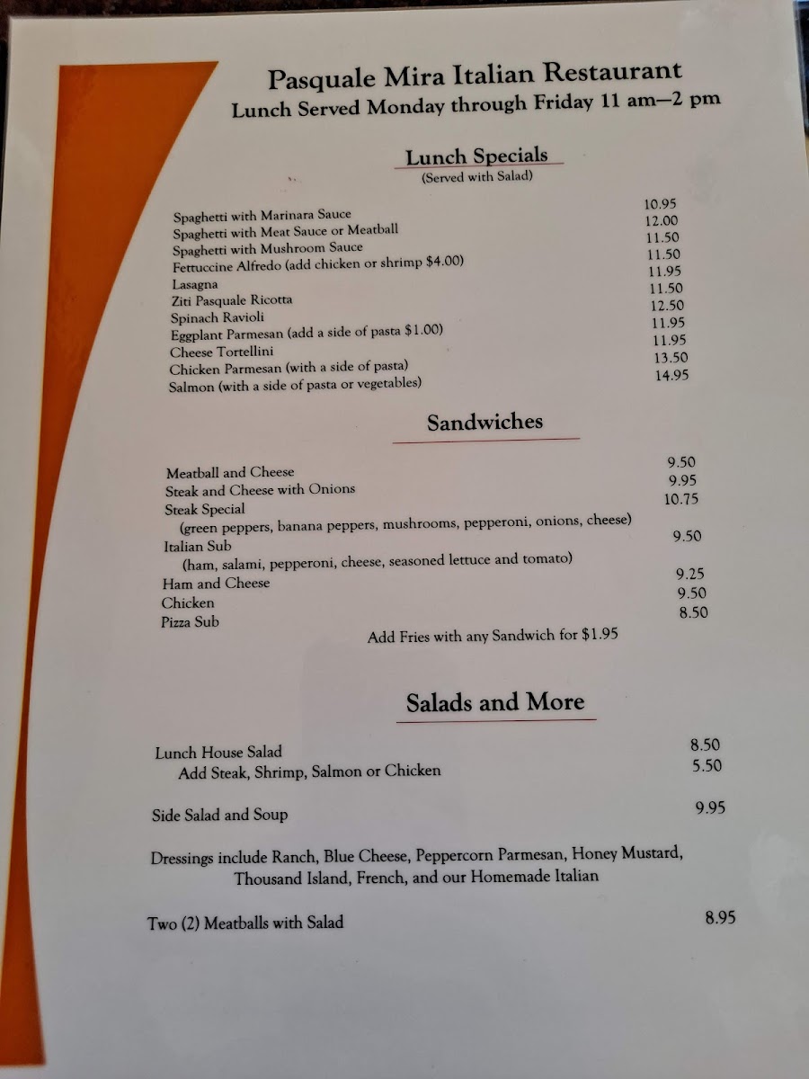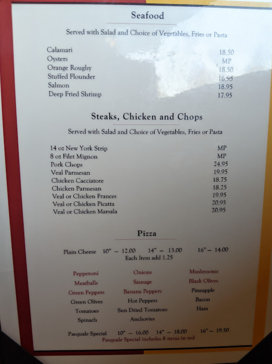 The menu at Pasquale's offers a comforting and straightforward Italian dining experience, blending classic dishes with a warm, inviting atmosphere. Whether you’re stopping by for a casual lunch, a relaxed dinner, or a small gathering, the menu features familiar favorites that suit a variety of appetites and occasions.